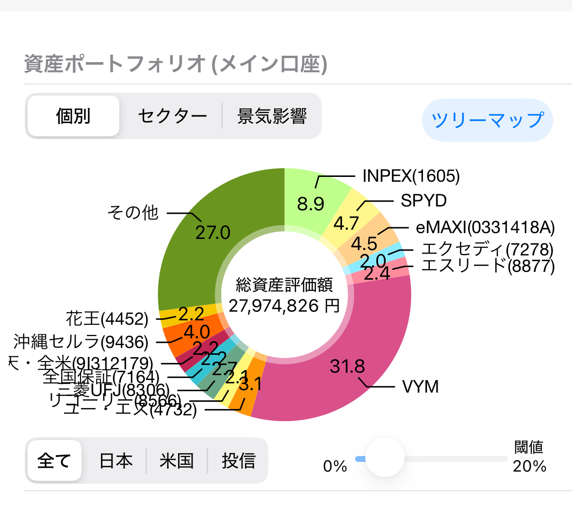 現在の米国株のポートフォリオは以下の画像の通りです。