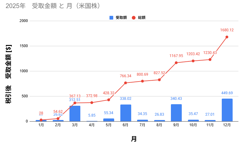 12月の税引後総受取配当金 は 449.69$ と 80,446円 でした。